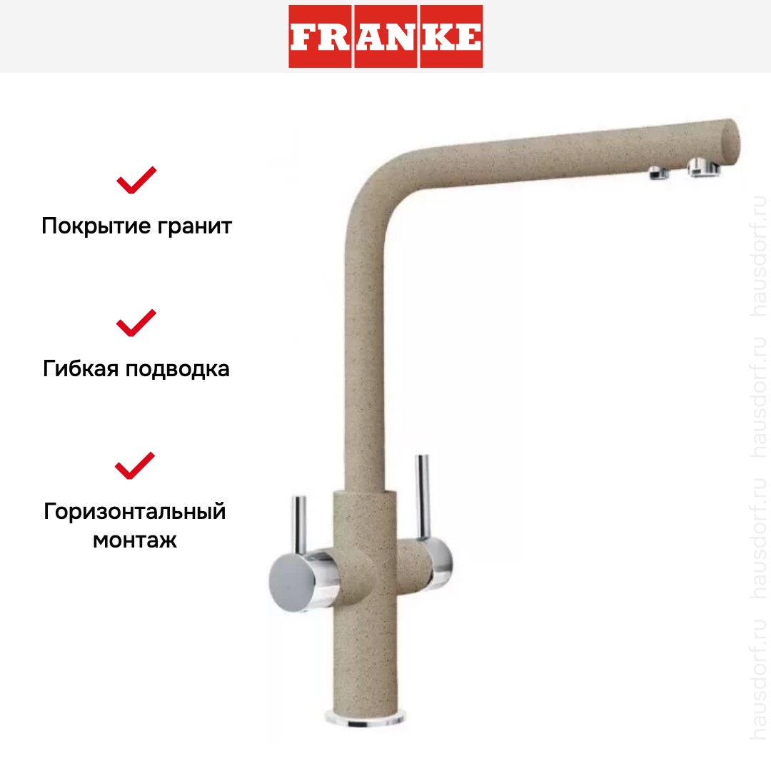 Смеситель Franke Neptune Clear Water хром/миндаль