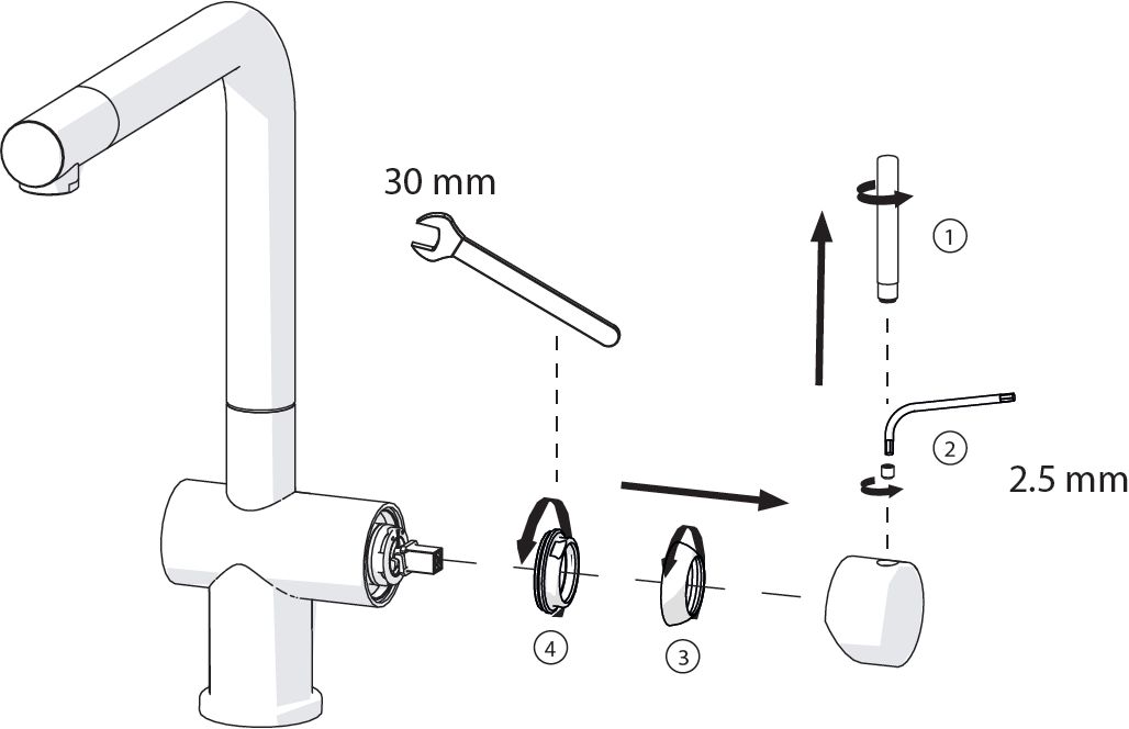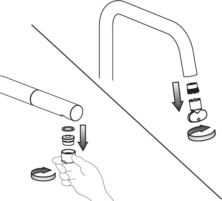 Специальная насадка позволяет выдвинуть излив как маленький шланг и направить струю в слишком высокую кастрюлю, которая не помещается под стационарным краном, на овощи в раковине, на загрязнения в неудобных уголках мойки, которые нужно удалить и т.д. Благодаря особой конструкции вы можете также направить воду из раковины в ванну или из одной чаши мойки в другую одним поворотом крана в нужную сторону. Дополнительная деталь, которая повышает комфорт использования, — аэратор. Он делает поток воды мягче, насыщая его кислородом, таким образом дополнительно уменьшая ее расход: объем струи увеличивается за счет воздуха, а не за счет повышения напора из водопровода.