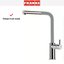 Внутри крана помещается шланг, который можно растянуть, чтобы достать струей воды до второй чаши мойки или тщательно сполоснуть посуду.