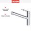 Внутри крана помещается шланг, который можно растянуть, чтобы достать струей воды до второй чаши мойки или тщательно сполоснуть посуду.