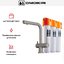 Управление реализовано по двухрычажному принципу: отдельные рукоятки отвечают за регулировку обычной воды и за подачу фильтрованной. Встроенный аэратор формирует ровную струю, способствующую комфортному пользованию в ежедневных сценариях. Чистая вода получается путем фильтрации: фильтр входит в комплект поставки.