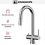 Смеситель с подключением к фильтру для воды — современная модель, которая облегчает быт. Вместо двух соединений с водопроводом у таких вариантов их три, а трубка, по которой идет отфильтрованная вода, находится внутри крана. Чуть дальше основного отверстия, через которое подается поток в раковину, расположено отверстие поменьше — для питьевой воды.