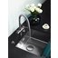 Внутри крана помещается шланг, который можно растянуть, чтобы достать струей воды до второй чаши мойки или тщательно сполоснуть посуду.