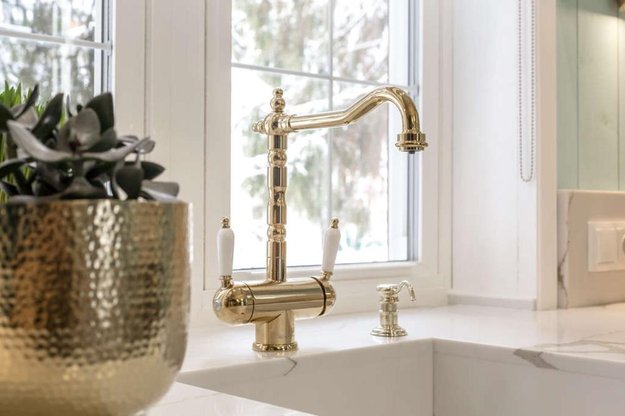 Отдельный канал для фильтрованной воды — опция, которой оснащаются многие смесители с фильтром. Это экономичный, удобный вариант, не требующий установки дополнительного смесителя или покупки бутилированной воды. Монтаж его будет таким же, как монтаж обычного крана, но потребуется, кроме подключения к горячей и холодной воде, еще одно дополнительное подключение — к фильтру. Система фильтров может размещаться под раковиной, в кухонной тумбе, и соединяться со смесителем при помощи гибкой трубки. Проточные фильтры позволяют задерживать соли металлов, защищают от болезнетворных микроорганизмов. В зависимости от качества воды картриджи в фильтрах требуется менять каждый год или чаще. Еще более эффективны фильтры с системой обратного осмоса, которые не пропускают до 98% посторонних примесей.