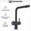Для подачи чистой воды смесители могут оснащаться единственным рычагом, при помощи которого производится переключение на фильтр. Этот же рычаг регулирует напор и температуру водопроводной воды. Чаще на изливе имеются два рычага, один из которых отвечает только за включение фильтрованной воды.