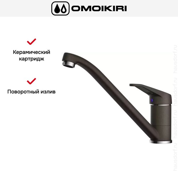 Смеситель Омойкири — отличный выбор для кухни и ванной комнаты. Простая конструкция позволяет изменять напор и температуру воды с помощью одного рычага: двигайте его вправо-влево или вверх-вниз для достижения нужного результата. Эта модель подойдет современному интерьеру, будет незаменима, если в вашем распоряжении небольшое пространство для сантехники. Благодаря запорному механизму в виде керамических пластин такой смеситель прослужит много лет, так как в нем отсутствуют быстро стирающиеся прокладки; также на клапане практически не образуется накипь. При повороте ручки диски внутри смещаются относительно друг друга — открывают или блокируют воду.