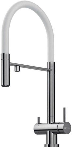 Рычаг для включения фильтрованной воды применяется в современных комбинированных смесителях, где из одного и того же излива подается и водопроводная, и питьевая вода. Такие смесители типа «два в одном» отличаются от обычных тем, что имеют не два подключения, а три, где третье соединяет смеситель с фильтром. Очищенная вода подается по изолированной трубке, проходящей внутри излива. Для удаления накипи, солей металлов, микроорганизмов и прочих вредных примесей могут применяться различные типы фильтров. Проточные фильтры устанавливаются под мойкой и включают несколько картриджей, которые необходимо менять по мере использования. С их помощью можно избавиться от таких примесей, как железо, хлор и многие другие. Устройства с системой обратного осмоса оснащаются диффузором, включающим картриджи для предварительной очистки и осмотическую мембрану, задерживающую практически все вредные примеси.
