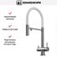 Высота излива — один из важнейших параметров, которые необходимо учитывать при выборе кухонного смесителя. Высотой называется расстояние от поверхности, на которой установлен смеситель, до его носика, то есть это, по сути, длина струи воды. Подбирать модель по высоте следует так, чтобы в раковину без труда помещались любые емкости, которыми вы пользуетесь, включая большие кастрюли и высокие вазы, а вода при ударе о дно раковины не разбрызгивалась во все стороны. Чем больше высота излива, тем глубже должна быть раковина.