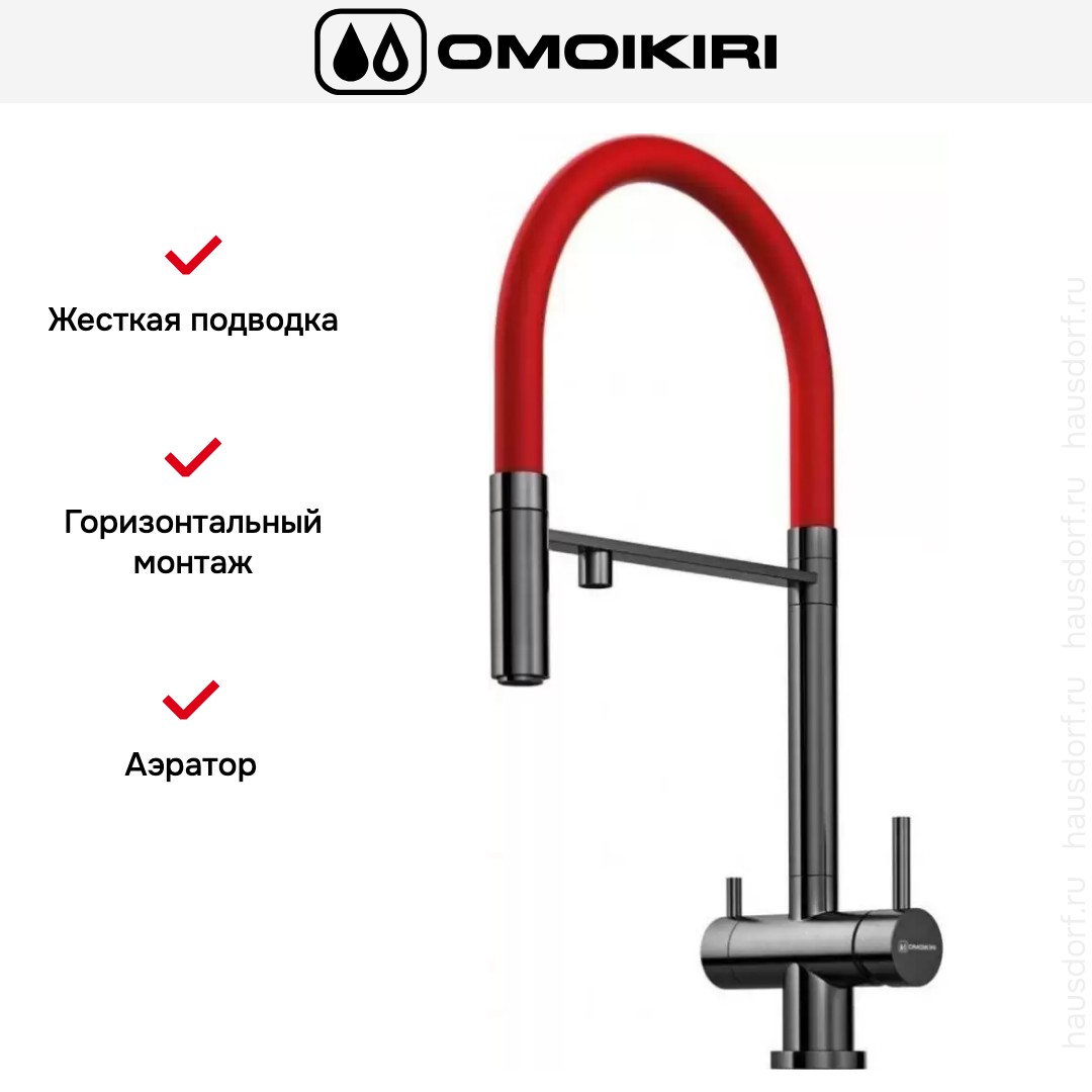 Модель Omoikiri KANTO устанавливается привычным способом: на бортик мойки или ванной в предназначенные для этого отверстия (они могут быть вырезаны производителями заранее, но если нет, при достаточной ширине можно добавить их самостоятельно). Жесткая подводка, хоть и недостаточно вариативная в расположении, имеет ряд преимуществ: долго служит, мало подвержена коррозии, проста в обслуживании, хорошо выдерживает перепады напора и температуры.