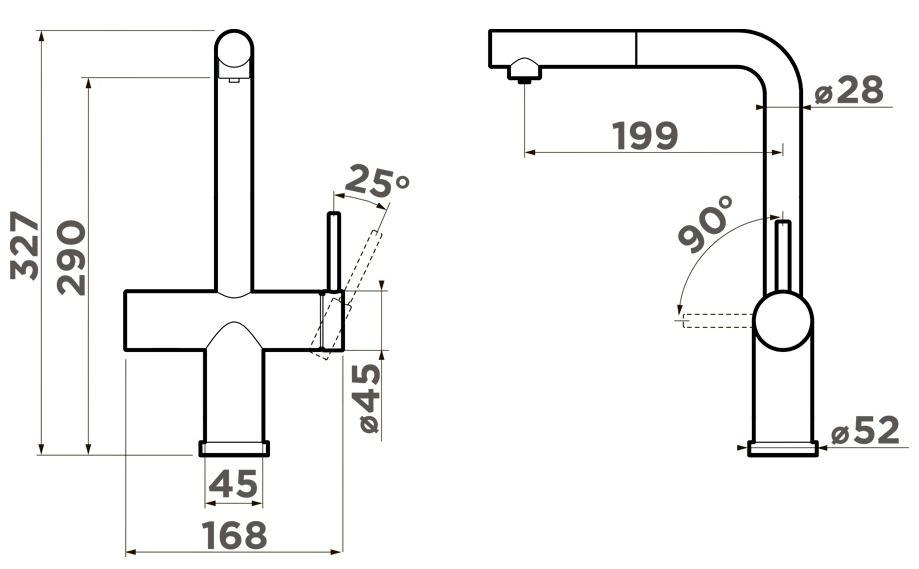 Специальная насадка позволяет выдвинуть излив как маленький шланг и направить струю в слишком высокую кастрюлю, которая не помещается под стационарным краном, на овощи в раковине, на загрязнения в неудобных уголках мойки, которые нужно удалить и т.д. Дополнительная деталь, которая повышает комфорт использования, — аэратор. Он делает поток воды мягче, насыщая его кислородом, таким образом дополнительно уменьшая ее расход: объем струи увеличивается за счет воздуха, а не за счет повышения напора из водопровода. К этой модели можно подключить фильтр для питьевой воды.