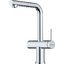 Смеситель с подключением к фильтру для воды — современная модель, которая облегчает быт. Вместо двух соединений с водопроводом у таких вариантов их три, а трубка, по которой идет отфильтрованная вода, находится внутри крана. Чуть дальше основного отверстия, через которое подается поток в раковину, расположено отверстие поменьше — для питьевой воды.