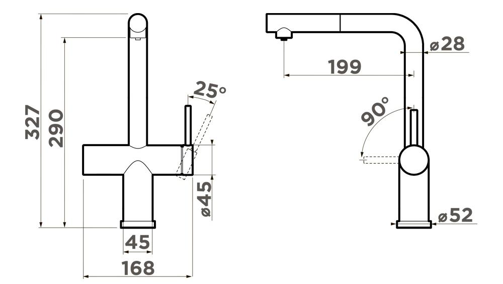 Специальная насадка позволяет выдвинуть излив как маленький шланг и направить струю в слишком высокую кастрюлю, которая не помещается под стационарным краном, на овощи в раковине, на загрязнения в неудобных уголках мойки, которые нужно удалить и т.д. Дополнительная деталь, которая повышает комфорт использования, — аэратор. Он делает поток воды мягче, насыщая его кислородом, таким образом дополнительно уменьшая ее расход: объем струи увеличивается за счет воздуха, а не за счет повышения напора из водопровода. К этой модели можно подключить фильтр для питьевой воды.