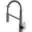 Выдвижной излив в кухонном смесителе — это гибкая трубка из резины в металлической оплетке, расположенная внутри основного излива. Для того, чтобы воспользоваться гибким изливом — например, наполнить высокую посуду, — достаточно включить воду и потянуть за головку, находящуюся на конце трубки.