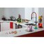 Специальная насадка позволяет выдвинуть излив как маленький шланг и направить струю в слишком высокую кастрюлю, которая не помещается под стационарным краном, на овощи в раковине, на загрязнения в неудобных уголках мойки, которые нужно удалить и т.д. Дополнительная деталь, которая повышает комфорт использования, — аэратор. Он делает поток воды мягче, насыщая его кислородом, таким образом дополнительно уменьшая ее расход: объем струи увеличивается за счет воздуха, а не за счет повышения напора из водопровода. К этой модели можно подключить фильтр для питьевой воды.