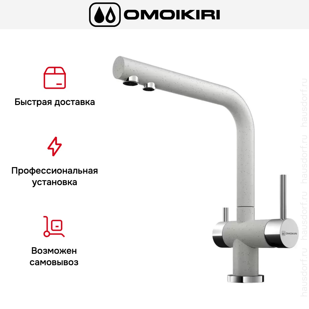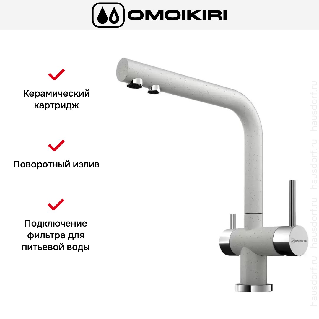 Смеситель Омойкири — отличный выбор для кухни и ванной комнаты. Классический вариант с двумя вентилями подойдет большинству пользователей: нужно настраивать напор и температуру воды из «горячей» и «холодной трубы» отдельно, поток смешивается внутри крана и на выходе имеет оптимальную температуру. Благодаря запорному механизму в виде керамических пластин такой смеситель прослужит много лет, так как в нем отсутствуют быстро стирающиеся прокладки; также на клапане практически не образуется накипь. При повороте ручки диски внутри смещаются относительно друг друга — открывают или блокируют воду.