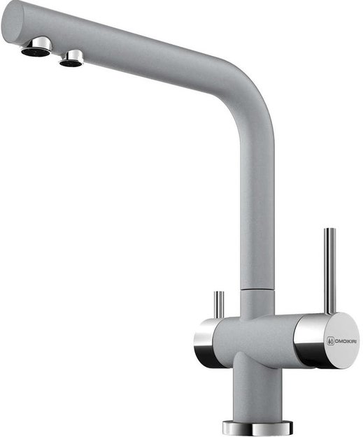 Для подачи чистой воды смесители могут оснащаться единственным рычагом, при помощи которого производится переключение на фильтр. Этот же рычаг регулирует напор и температуру водопроводной воды. Чаще на изливе имеются два рычага, один из которых отвечает только за включение фильтрованной воды.