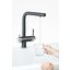 Благодаря особой конструкции вы можете также направить воду из раковины в ванну или из одной чаши мойки в другую одним поворотом крана в нужную сторону. Дополнительная деталь, которая повышает комфорт использования, — аэратор. Он делает поток воды мягче, насыщая его кислородом, таким образом дополнительно уменьшая ее расход: объем струи увеличивается за счет воздуха, а не за счет повышения напора из водопровода. К этой модели можно подключить фильтр для питьевой воды.