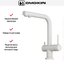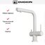 Для подачи чистой воды смесители могут оснащаться единственным рычагом, при помощи которого производится переключение на фильтр. Этот же рычаг регулирует напор и температуру водопроводной воды. Чаще на изливе имеются два рычага, один из которых отвечает только за включение фильтрованной воды.