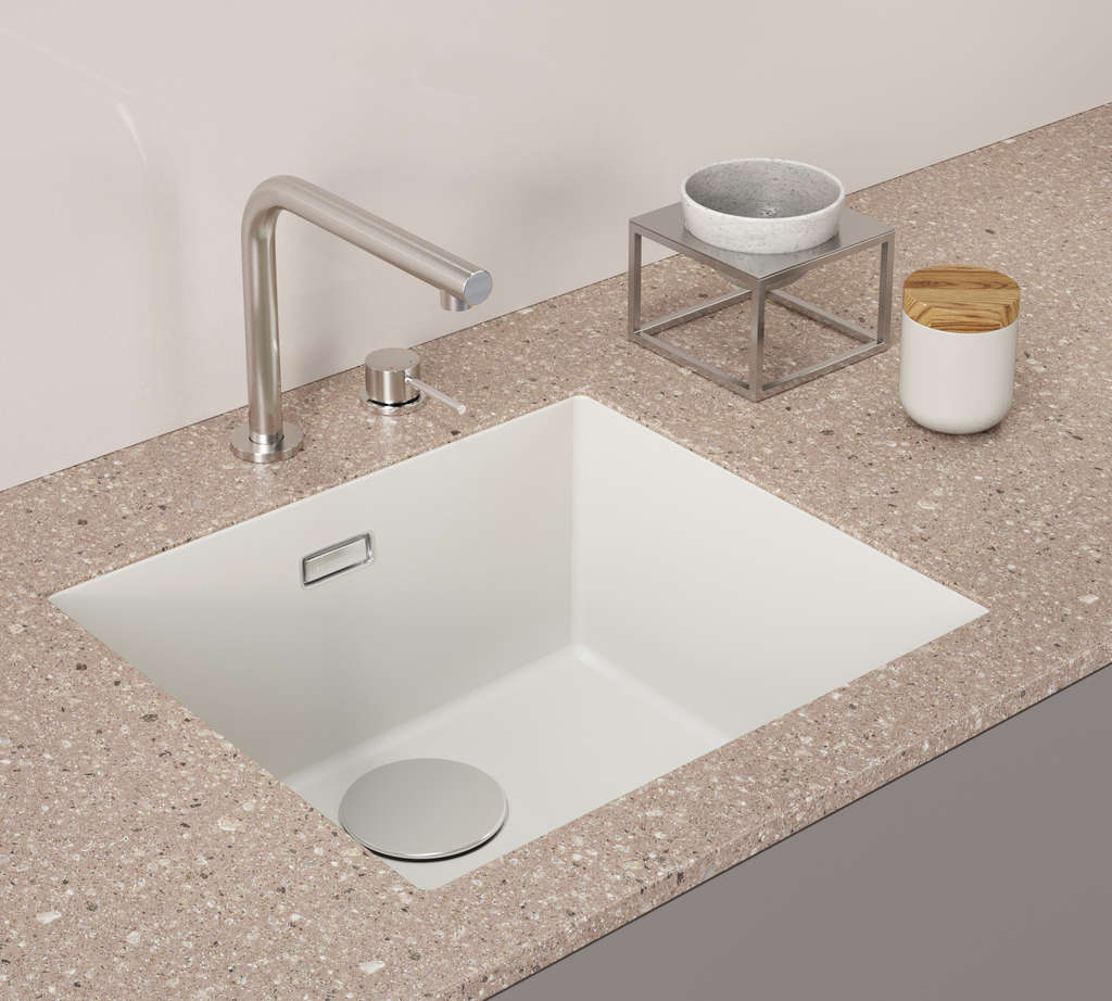 Длиной излива называется расстояние по горизонтали от основания смесителя до точки в раковине, куда падает струя воды. Учитывать длину при выборе смесителя и мойки так же важно, как и высоту. Основной фактор выбора: струя должна попадать в середину раковины, а не на одну из боковых поверхностей, чтобы не забрызгать столешницу и рядом стоящую бытовую технику. В идеале она должна попадать прямо на сливное отверстие, в крайнем случае место падения должно располагаться между сливным отверстием и передней стенкой. При этом нужно учитывать угол, под которым падает струя, а также расстояние от основания смесителя до ближайшей стенки раковины. Проводить измерения следует при максимальном напоре воды.