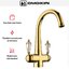 Смеситель с подключением к фильтру для воды — современная модель, которая облегчает быт. Вместо двух соединений с водопроводом у таких вариантов их три, а трубка, по которой идет отфильтрованная вода, находится внутри крана. Чуть дальше основного отверстия, через которое подается поток в раковину, расположено отверстие поменьше — для питьевой воды.