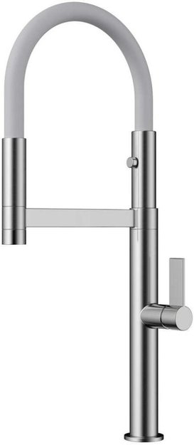Для использования режима душа смесители оснащаются, как правило, выдвижным изливом, который имеет насадку-душ. В конструкцию у них добавляется элемент, который способен переключать направление струи с обычного излива на гибкий. Отдельный гибкий шланг вытягивается наружу за эту насадку из корпуса излива. Длина его может составить до 1,5 м, что поможет также вымыть все уголки раковины и наполнить емкости любого размера. Кроме смесителей с одним выдвижным изливом , производители предлагают полупрофессиональные модели с двумя изливами.