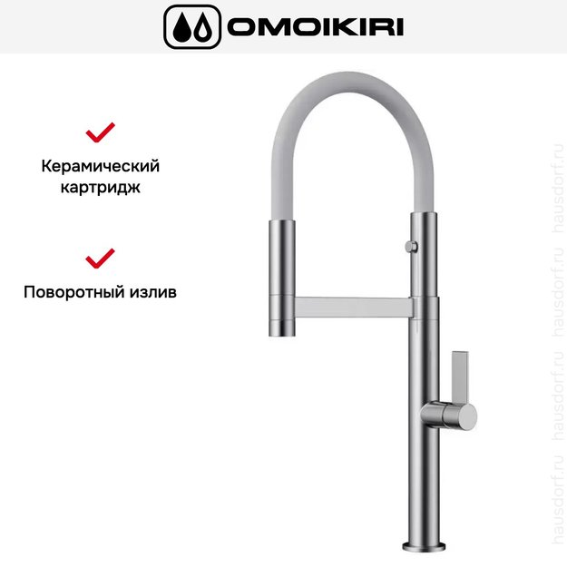 Смеситель Омойкири — отличный выбор для кухни и ванной комнаты. Простая конструкция позволяет изменять напор и температуру воды с помощью одного рычага: двигайте его вправо-влево или вверх-вниз для достижения нужного результата. Эта модель подойдет современному интерьеру, будет незаменима, если в вашем распоряжении небольшое пространство для сантехники. Благодаря запорному механизму в виде керамических пластин такой смеситель прослужит много лет, так как в нем отсутствуют быстро стирающиеся прокладки; также на клапане практически не образуется накипь. При повороте ручки диски внутри смещаются относительно друг друга — открывают или блокируют воду.