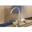 Высота излива — один из важнейших параметров, которые необходимо учитывать при выборе кухонного смесителя. Высотой называется расстояние от поверхности, на которой установлен смеситель, до его носика, то есть это, по сути, длина струи воды. Подбирать модель по высоте следует так, чтобы в раковину без труда помещались любые емкости, которыми вы пользуетесь, включая большие кастрюли и высокие вазы, а вода при ударе о дно раковины не разбрызгивалась во все стороны. Чем больше высота излива, тем глубже должна быть раковина.