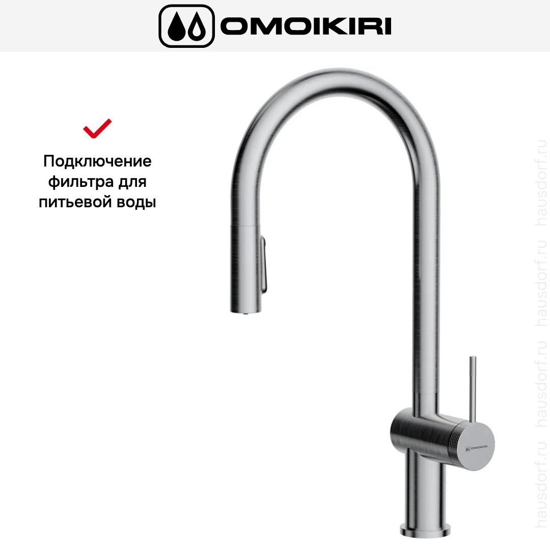 Специальная насадка позволяет выдвинуть излив как маленький шланг и направить струю в слишком высокую кастрюлю, которая не помещается под стационарным краном, на овощи в раковине, на загрязнения в неудобных уголках мойки, которые нужно удалить и т.д. Благодаря особой конструкции вы можете также направить воду из раковины в ванну или из одной чаши мойки в другую одним поворотом крана в нужную сторону. Дополнительная деталь, которая повышает комфорт использования, — аэратор. Он делает поток воды мягче, насыщая его кислородом, таким образом дополнительно уменьшая ее расход: объем струи увеличивается за счет воздуха, а не за счет повышения напора из водопровода. К этой модели можно подключить фильтр для питьевой воды.