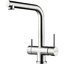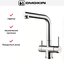 Для подачи чистой воды смесители могут оснащаться единственным рычагом, при помощи которого производится переключение на фильтр. Этот же рычаг регулирует напор и температуру водопроводной воды. Чаще на изливе имеются два рычага, один из которых отвечает только за включение фильтрованной воды.