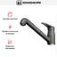 Внутри крана помещается шланг, который можно растянуть, чтобы достать струей воды до второй чаши мойки или тщательно сполоснуть посуду.