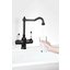Рычаг для включения фильтрованной воды применяется в современных комбинированных смесителях, где из одного и того же излива подается и водопроводная, и питьевая вода. Такие смесители типа «два в одном» отличаются от обычных тем, что имеют не два подключения, а три, где третье соединяет смеситель с фильтром. Очищенная вода подается по изолированной трубке, проходящей внутри излива. Для удаления накипи, солей металлов, микроорганизмов и прочих вредных примесей могут применяться различные типы фильтров. Проточные фильтры устанавливаются под мойкой и включают несколько картриджей, которые необходимо менять по мере использования. С их помощью можно избавиться от таких примесей, как железо, хлор и многие другие. Устройства с системой обратного осмоса оснащаются диффузором, включающим картриджи для предварительной очистки и осмотическую мембрану, задерживающую практически все вредные примеси.
