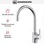 Высота излива — один из важнейших параметров, которые необходимо учитывать при выборе кухонного смесителя. Высотой называется расстояние от поверхности, на которой установлен смеситель, до его носика, то есть это, по сути, длина струи воды. Подбирать модель по высоте следует так, чтобы в раковину без труда помещались любые емкости, которыми вы пользуетесь, включая большие кастрюли и высокие вазы, а вода при ударе о дно раковины не разбрызгивалась во все стороны. Чем больше высота излива, тем глубже должна быть раковина.