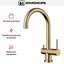 Смеситель с подключением к фильтру для воды — современная модель, которая облегчает быт. Вместо двух соединений с водопроводом у таких вариантов их три, а трубка, по которой идет отфильтрованная вода, находится внутри крана. Чуть дальше основного отверстия, через которое подается поток в раковину, расположено отверстие поменьше — для питьевой воды.