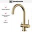 Для подачи воды используется дополнительный вентиль на смесителе или с отдельной установкой, гибкая трубка, пропущенная внутри излива и иногда дополнительное отверстие в носике. Таким образом очищенная вода не смешивается с водопроводной.