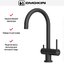 По высоте все смесители можно разделить на три группы: низкие, средние и высокие. Низкие обычно имеют один вентиль, а средние и высокие — по два. Высота низких смесителей составляет около 10-12 см, их выбирают для небольшой мойки глубиной около 120-140 мм и чаще устанавливают в ванной, чем в кухне. Кухонные модели могут дополняться выдвижными шлангами и поворотным изливом. Высота средних смесителей варьируется в пределах от 15 до 25 см: за стандартный принят размер 22 см. Они могут крепиться к мойке или к стене и подойдут для раковин глубиной около 170 мм. Для больших раковин глубиной более 20 см подойдут высокие изливы — от 25 до 50 см: они наиболее удобны, но требуют больше места.