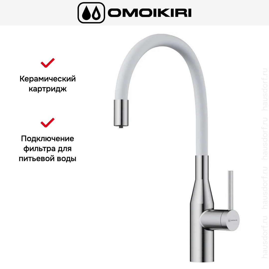 Смеситель OMOIKIRI Yatomi 2 Plus BN-WH представляет собой современное решение для кухни, сочетающее лаконичный дизайн и практичность.