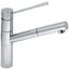 Внутри крана помещается шланг, который можно растянуть, чтобы достать струей воды до второй чаши мойки или тщательно сполоснуть посуду.