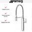 Смеситель Smeg с выдвижным и поворотным изливом подходит к линейке бытовой техники в стиле 50-х годов. Установка — островная или пристенная. Благодаря системам Water Saving Cartridge и Energy Saving Cartridge вы можете экономить, уменьшая напор на 50% или оставляя только холодную воду.