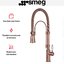 Smeg MIDR7RA-2 — стильный смеситель высотой 55 см с медным покрытием, изготовленным инновационным методом вакуумного напыления. Модель гармонирует с интерьерами в стиле ретро, классическом или кантри. Выдвижной излив позволяет использовать модель на мойках с несколькими чашами. Аэратор насыщает струю воды пузырьками воздуха и тем самым уменьшает брызги и заглушает звук удара струи и дно чаши. Гибкая нейлоновая подводка значительно облегчает установку.