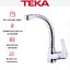 Выглядит как сдержанный и лаконичный элемент кухонного интерьера: гладкое хромированное покрытие подчёркивает обтекаемую форму корпуса и высокий, выразительный излив. Однорычажная рукоять плавно интегрирована в тело смесителя, а вертикальная ориентация монтажа оставляет минимальную площадь на столешнице. Модель рассчитана на установку в одно монтажное отверстие диаметром 33 мм и выглядит уместно рядом с мойкой благодаря пропорциям излива — высота 24.2 см и длина 18 см обеспечивают удобный доступ к воде сверху.
