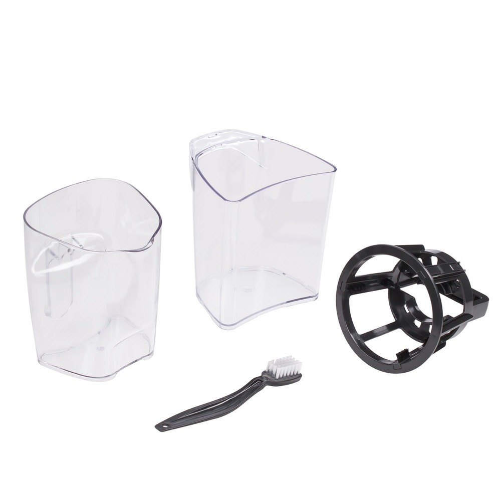 Контейнер для мякоти в соковыжималках представляет собой резервуар из прочного пластика, куда автоматически посредством специальной системы отвода мякоти сбрасываются отходы, или жмых, на протяжении всего процесса приготовления сока. Контейнер легко снимается для очистки под струей воды.