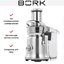Центробежная соковыжималка высокой мощности и с плавной регулировкой скорости. Отверстие для фруктов и овощей достаточно широкое, чтобы тратить меньше времени на их нарезку и подготовку. Фильтр с множеством мелких ячеек надежно отсеивает мякоть — емкость для жмыха вмещает до 3 л.