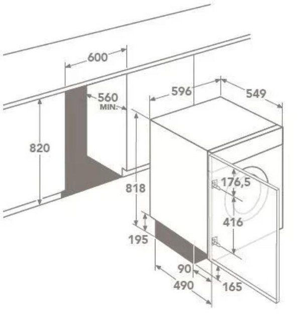 Машины с вертикальной загрузкой из-за своих конструктивных особенностей не могут встраиваться в мебель. Их высота составляет в среднем 89-90 см, и над ними необходимо оставить пространство для свободного открывания дверцы.