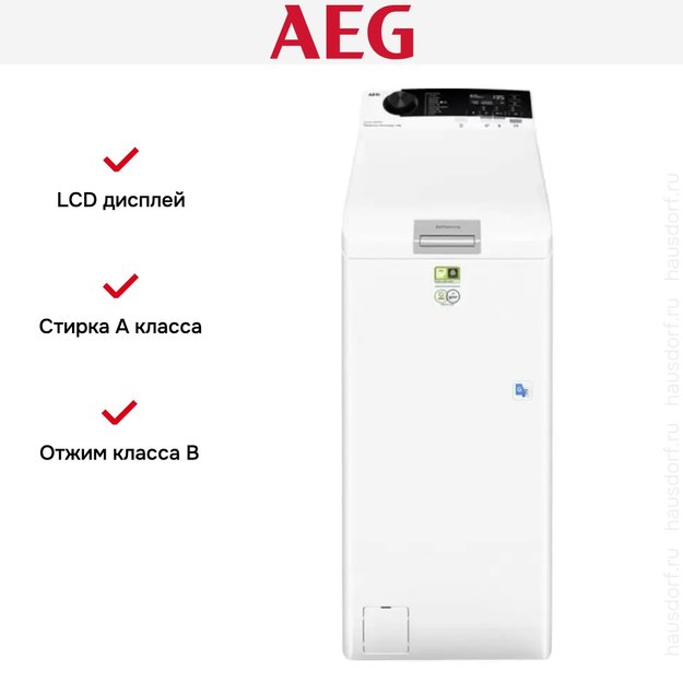 Стиральная машина АЕГ LTR8E373E выпущена в стандартной конфигурации — устанавливается отдельно, поэтому рекомендуем заранее выделить для нее место в квартире. Благодаря вертикальной загрузке она более компактная, чем классические модели, дополнительный плюс — не нужно постоянно нагибаться, чтобы загрузить и достать белье. Вместительность барабана средняя, поэтому ее хватит и для одиночек, и для семей с детьми. Максимальная загрузка: 7 кг.
