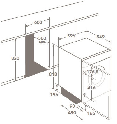 Машины с вертикальной загрузкой из-за своих конструктивных особенностей не могут встраиваться в мебель. Их высота составляет в среднем 89-90 см, и над ними необходимо оставить пространство для свободного открывания дверцы.