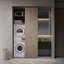 Машины с вертикальной загрузкой из-за своих конструктивных особенностей не могут встраиваться в мебель. Их высота составляет в среднем 89-90 см, и над ними необходимо оставить пространство для свободного открывания дверцы.