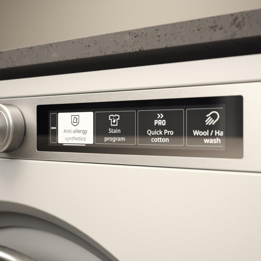 Электронное управление удобно и понятно. Производитель внедрил интеллектуальную систему контроля, с помощью которой данная модель автоматически улучшает все рабочие процессы. В вашем распоряжении: система ProWash, автоматическое дозирование жидкого моющего средства, функция Dose Assist, дезинфекция 4-log. Для выбора программ используются кнопки, поворотный программатор. Количество режимов для стирки разных типов белья: 24.
