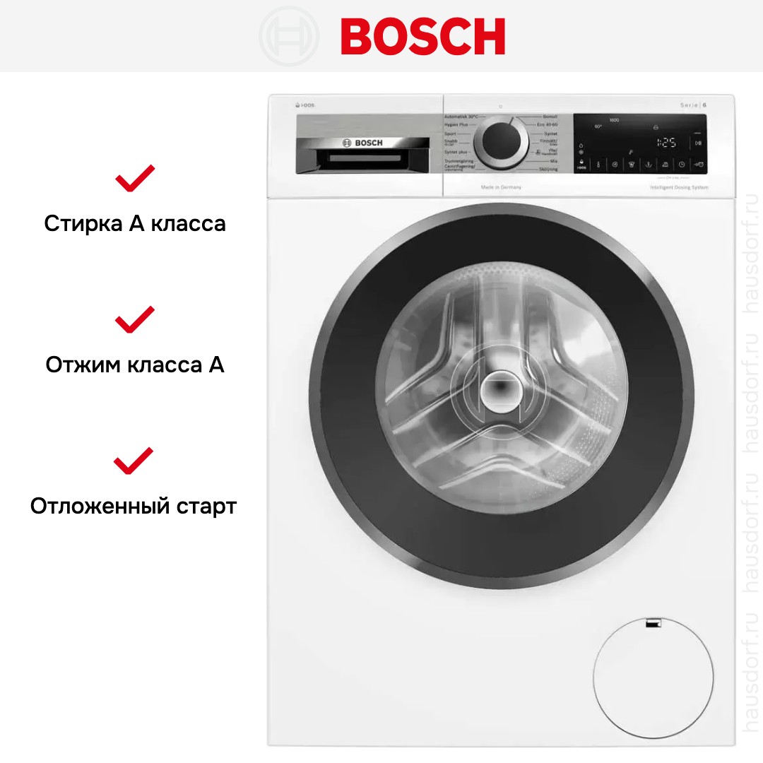 Цвет этой стиральной машинки — белый. В данной модели Bosch используется барабан WaveDrum. Его конструкция разработана специально для более бережной, но при этом все еще эффективной стирки. Мотор: Инверторный. Благодаря ему машина работает тише, потребляет меньше электроэнергии, сохраняя при этом необходимую мощность.