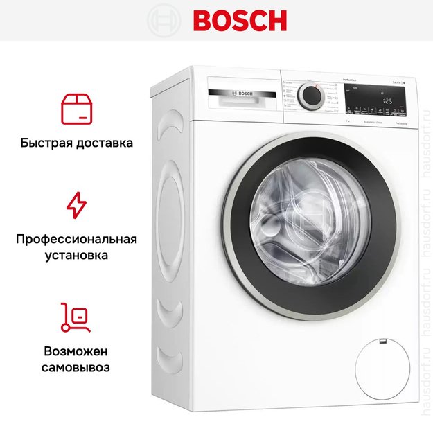 Цвет этой стиральной машинки — белый. В данной модели Bosch используется барабан VarioSoft. Его конструкция разработана специально для более бережной, но при этом все еще эффективной стирки. Мотор: Инверторный. Благодаря ему машина работает тише, потребляет меньше электроэнергии, сохраняя при этом необходимую мощность.