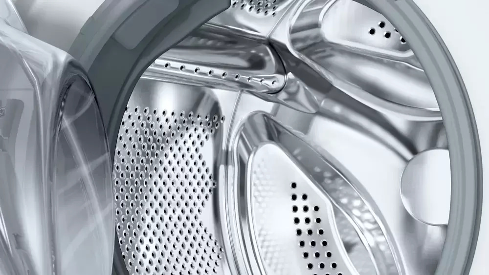 Барабан обычно изготавливается из тонкой нержавеющей стали, отверстия на боковой поверхности могут располагаться по-разному и иметь разную форму. Поверхность барабана в большинстве моделей не является гладкой: на ней находятся выпуклости и впадины для лучшего скольжения белья.